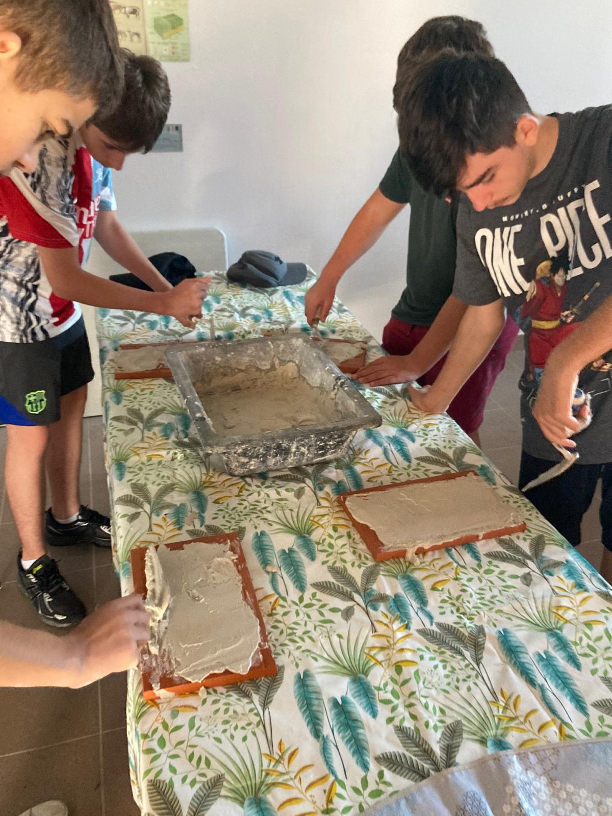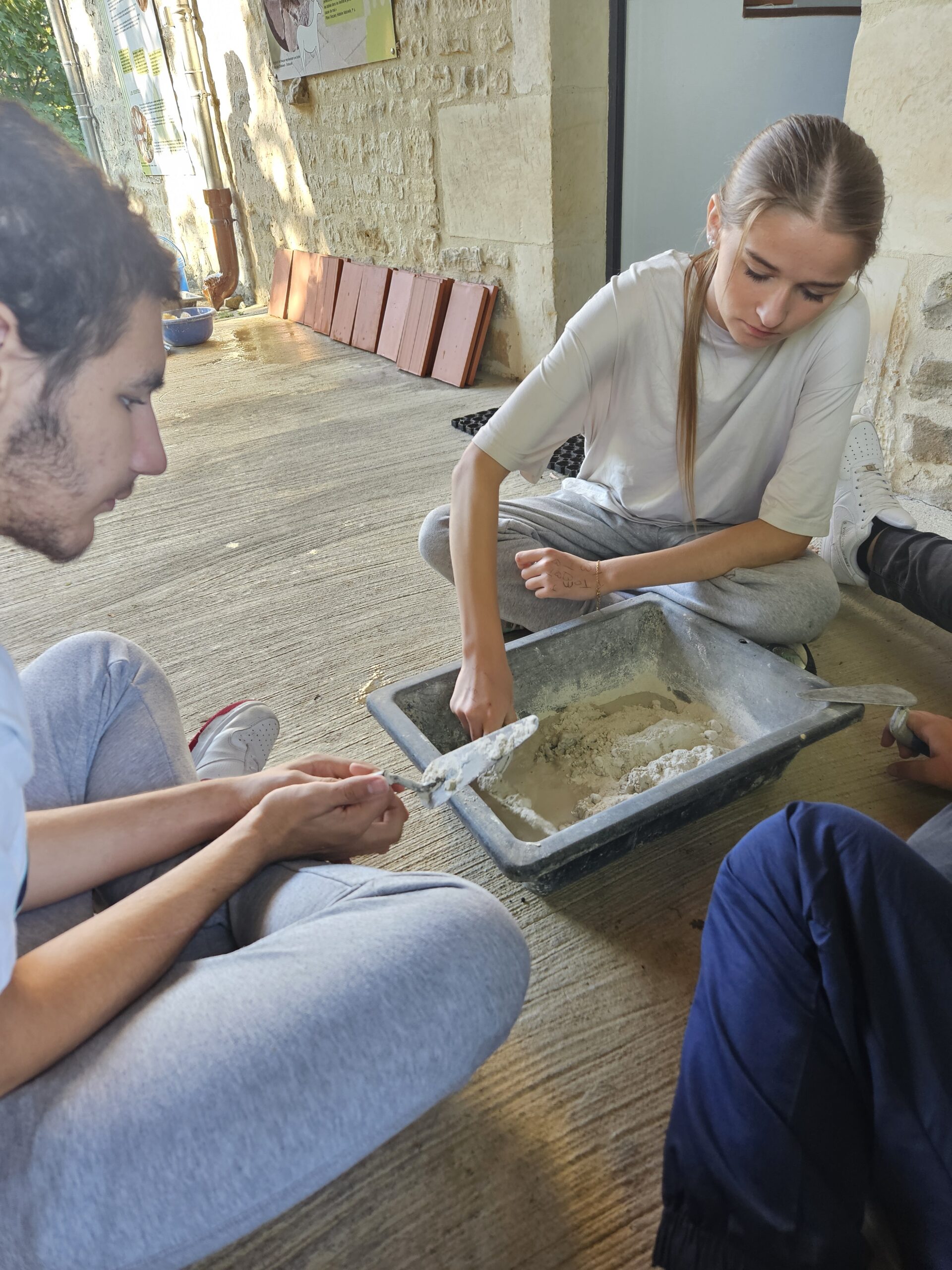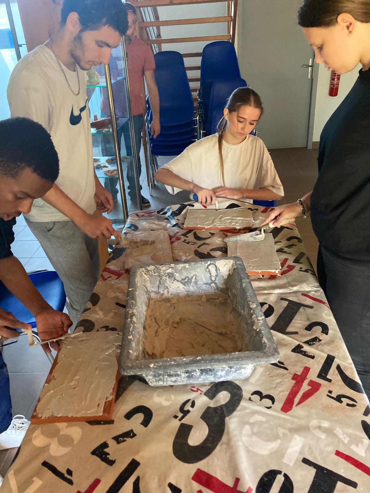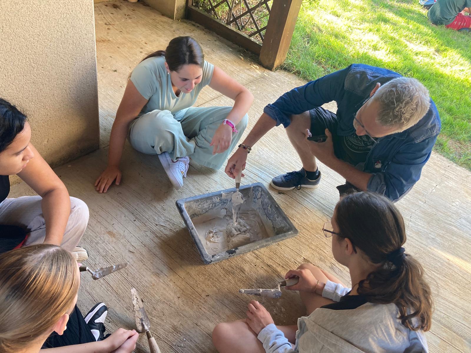 L’atelier fresque : du sable, de la chaux, de l’eau, des pigments … et la créativité de chacun !
