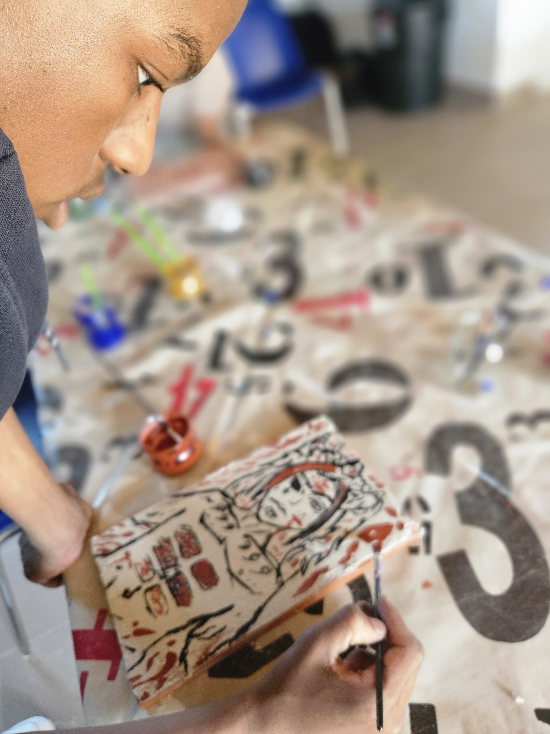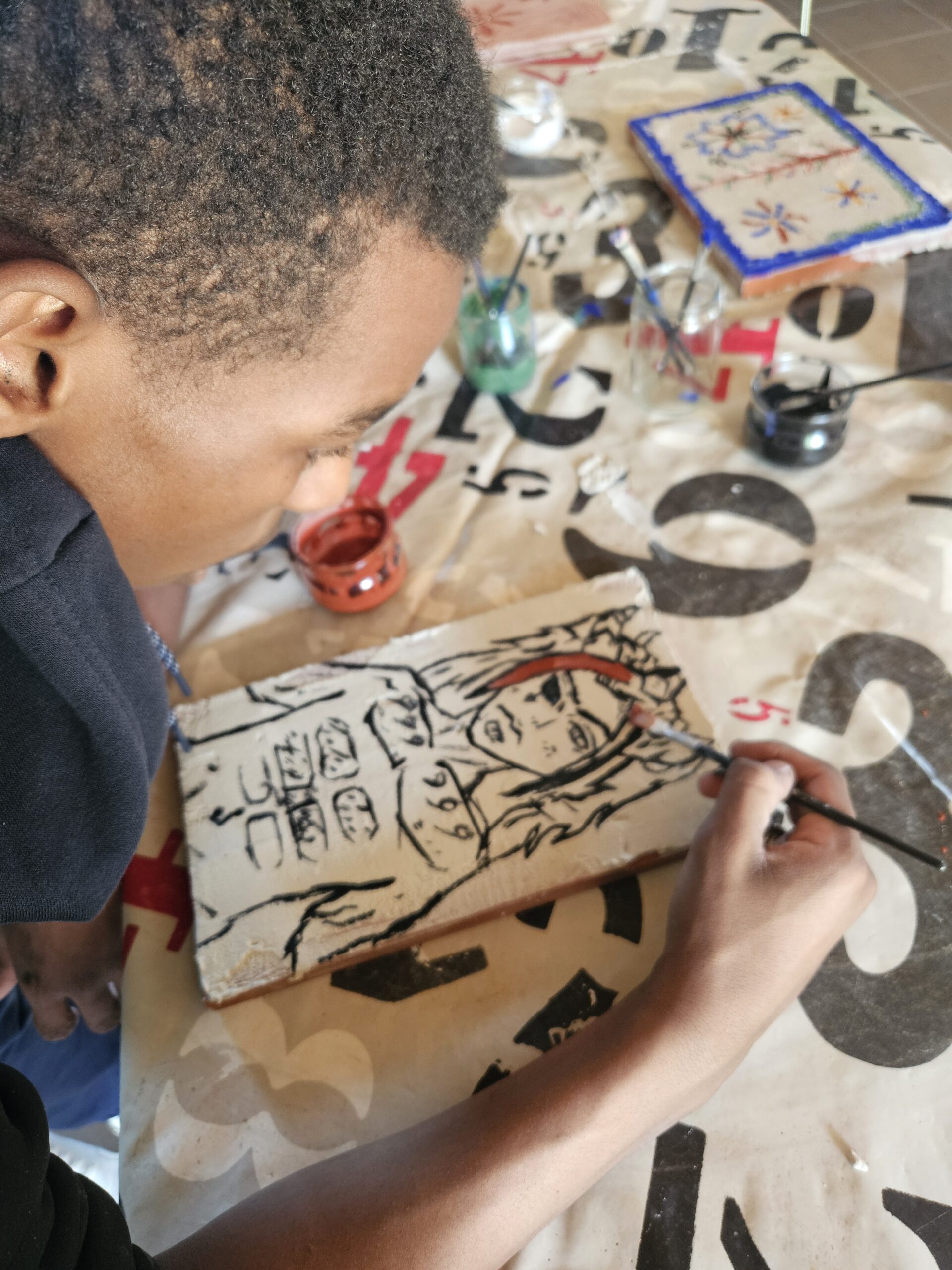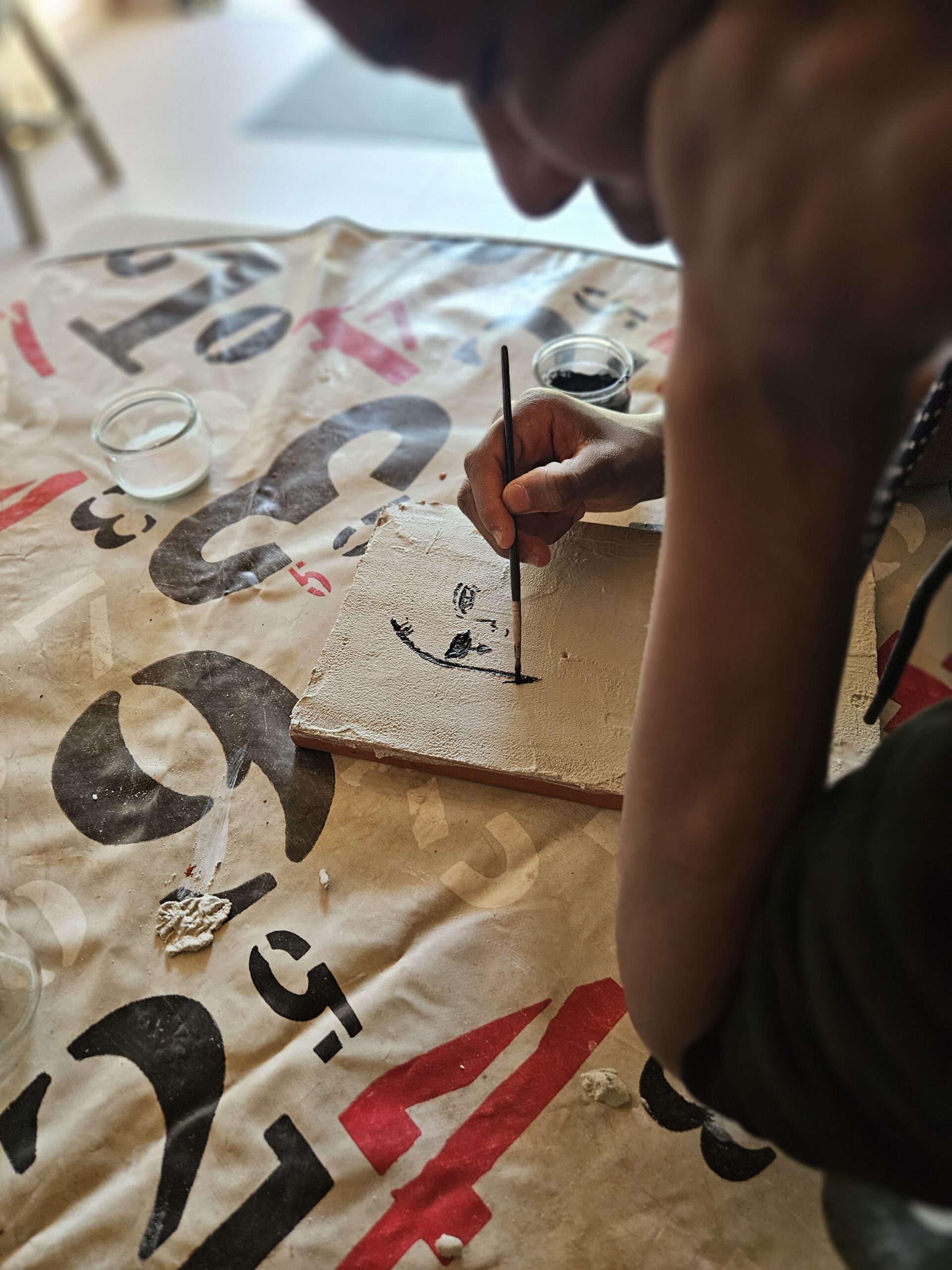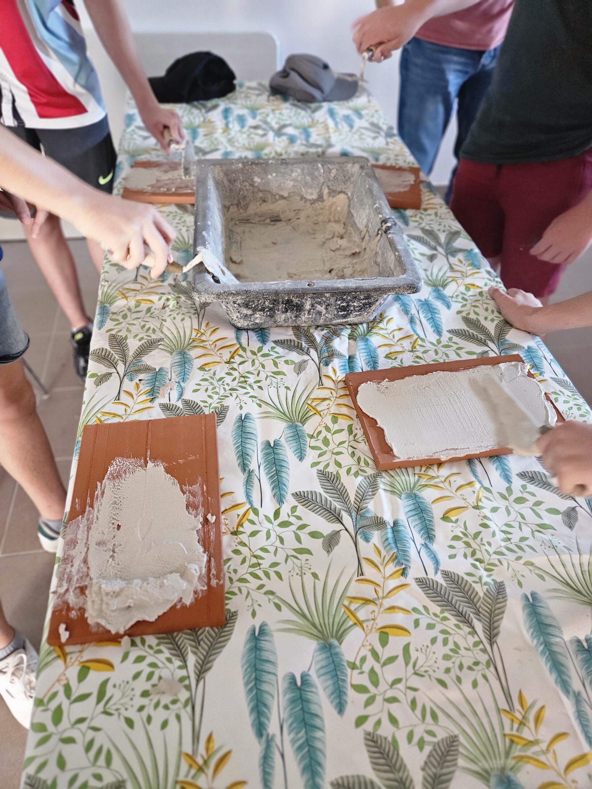 L’atelier fresque : du sable, de la chaux, de l’eau, des pigments … et la créativité de chacun !